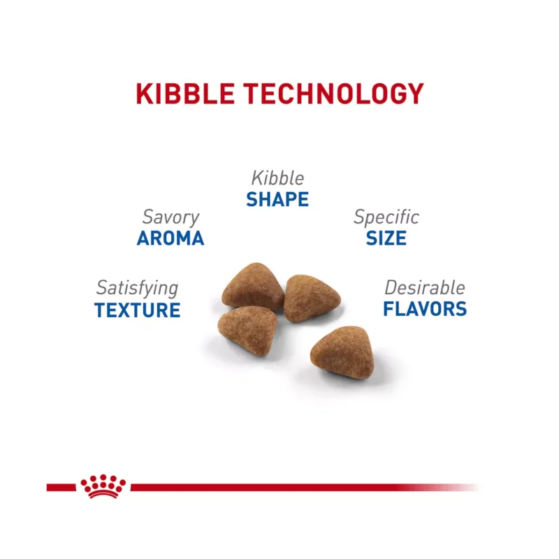 غذای خشک آن با کِیبل‌های ترد باعث کاهش تشکیل پلاک و جرم دندان می‌شود. برای بافتی که گربه دوست دارد، می‌توانید وعده آن‌ها را با غذای مرطوب Royal Canin Adult Instinctive تکمیل کنید.