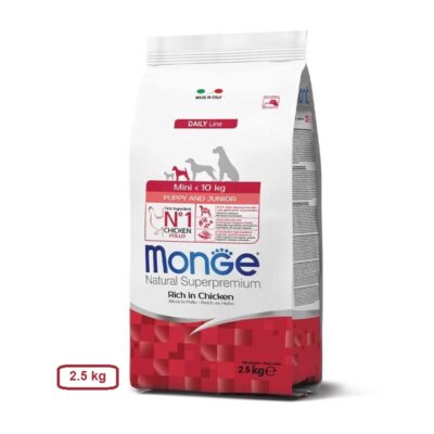 غذای خشک مونژه سگ مینی پاپی و جونیور (سوپر پریمیوم) طعم بره و برنج وزن 2.5 کیلوگرم دوران تولگی و