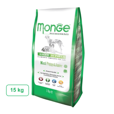 غذای سگ مونژه ماکسی پاپی اند جونیور با طعم مرغ ۱۵ کیلوگرم مدل MONGE Dog MAXI PUPPY&JUN